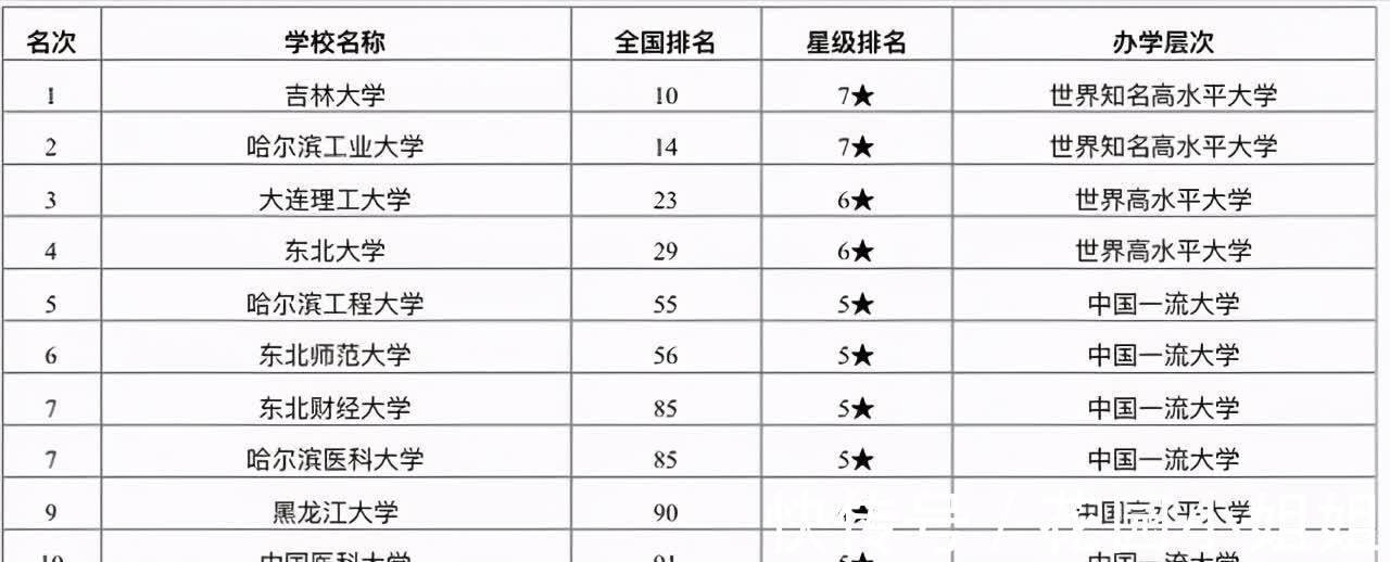 2021东北地区排名前十的大学分别是吉林大学、哈尔滨工业大学、大连理工大学、东北大学、哈尔滨工程大学、东北师范大学、东北财经大学、哈尔滨医科大学、黑龙江大学、中国医科大学。其中,吉林大学、哈尔滨工业大学、大连理工大学综合实力位居东北高校前三。